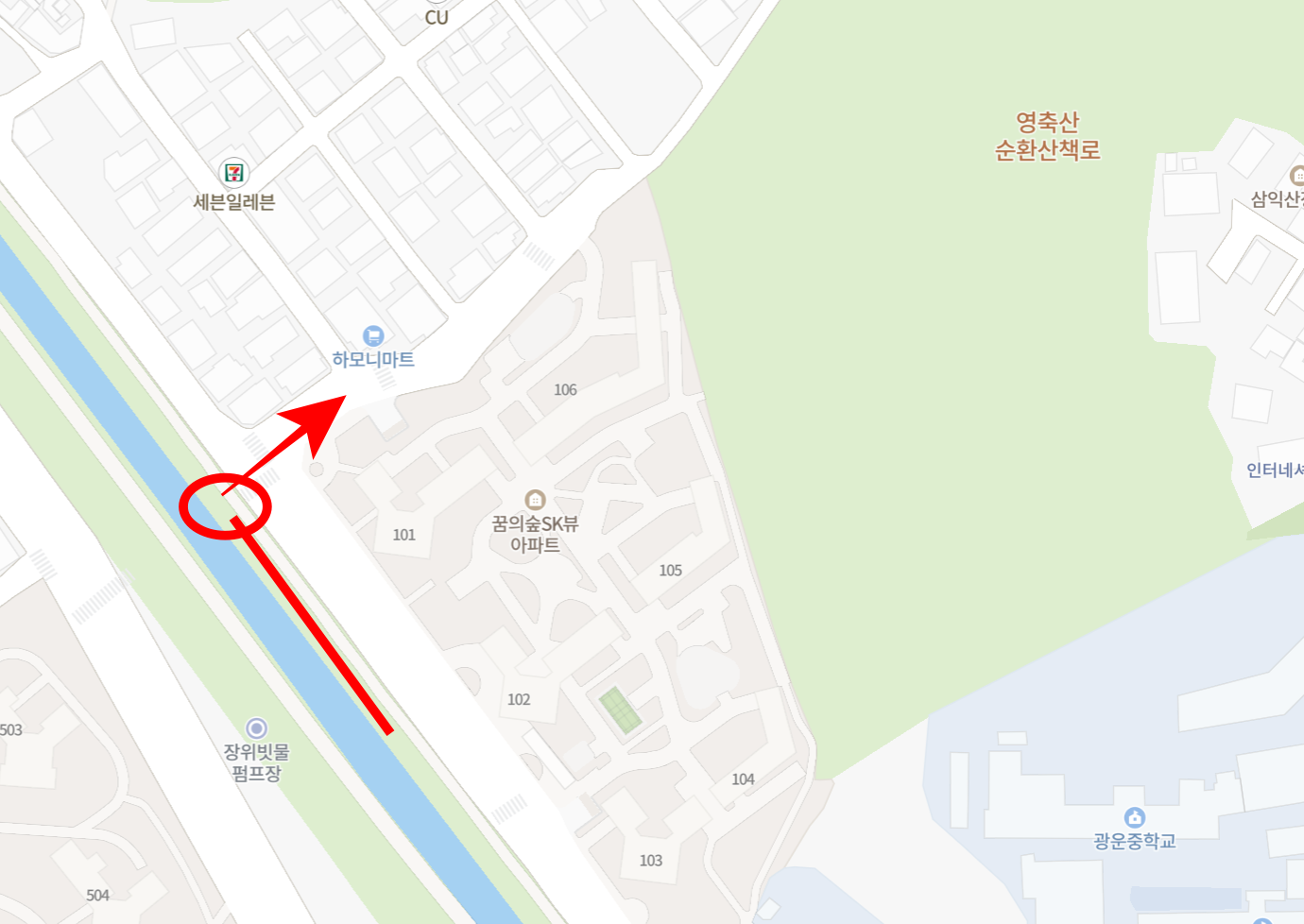저는 우이천 산책을 하다가 동그란 부분에서 올라가서