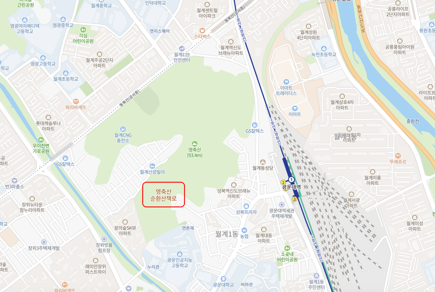 노원구 광운대역 뒤편에 위치한 산으로 우이천과
