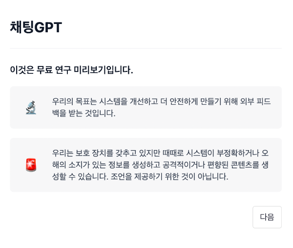 챗GPT가 너무 궁금하므로 회원가입만 하면 사용가능한